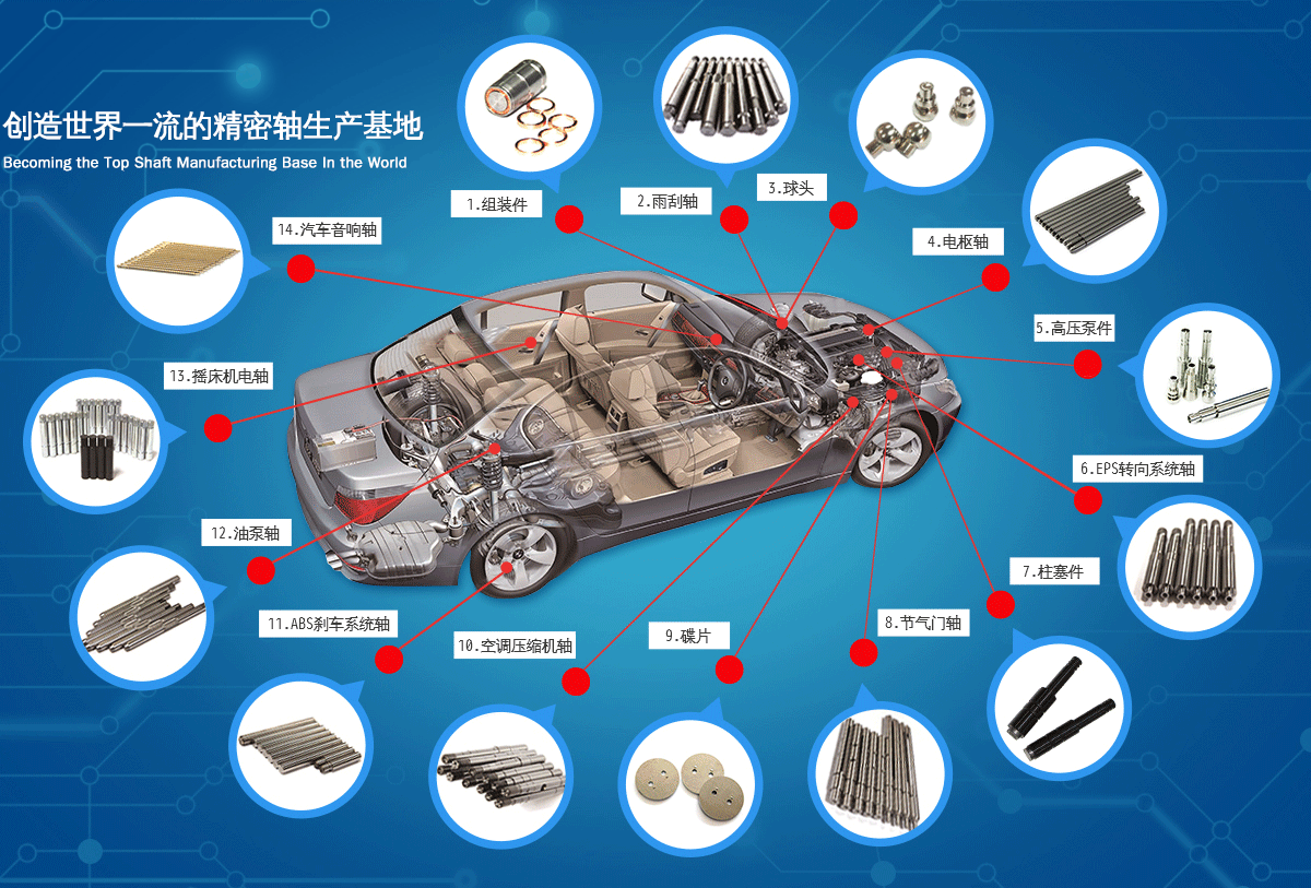 公司著眼于發(fā)展、創(chuàng)新,每年均投入大量人力和物力進(jìn)行新產(chǎn)品研發(fā)及技術(shù)改造,當(dāng)前公司產(chǎn)品包括各類汽車(chē)軸、精密馬達(dá)軸、工業(yè)零部件等近20個(gè)系列千余產(chǎn)品,遠(yuǎn)銷(xiāo)世界各地,深受客戶信賴。